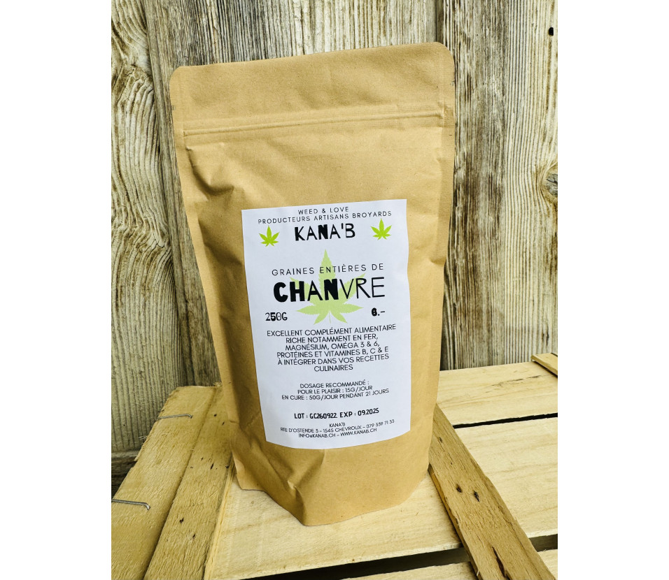 ganze Hanfsamen. Ausgezeichnetes Nahrungsergänzungsmittel, reich an Eisen, Magnesium, Omega 3 und 6, Proteinen und den Vitaminen B, C und E