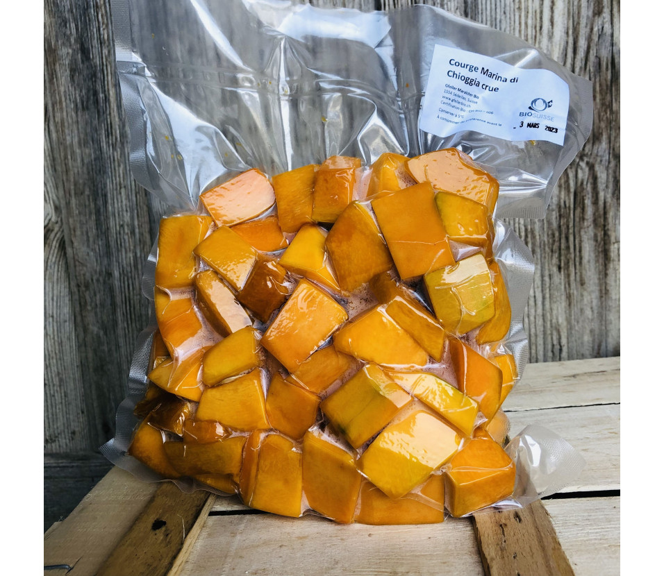 Courge coupée en dés pour faire de la soupe, en légume ou gratin.